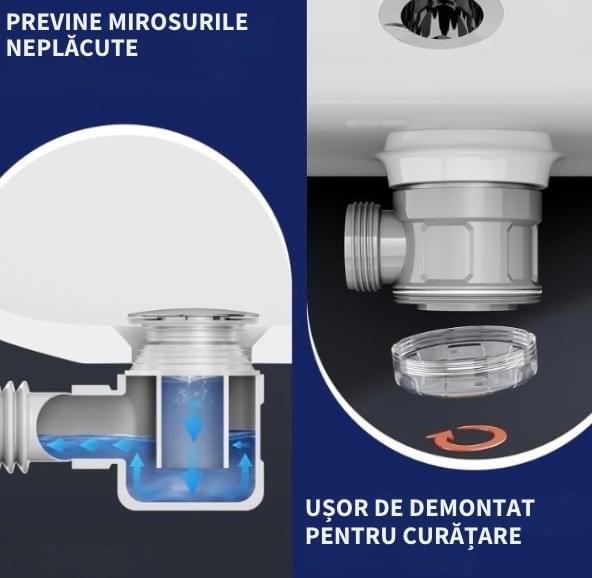 previne eficient mirosurile neplăcute și înfundările, menținând scurgerile curate