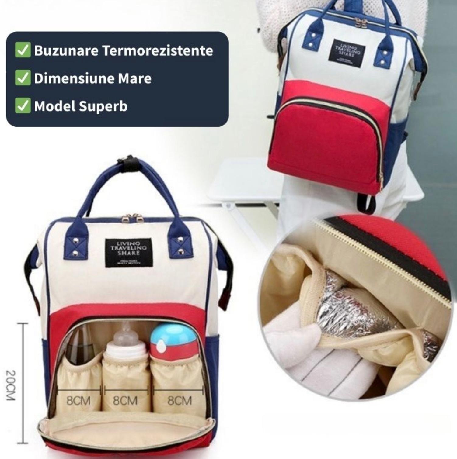 ✅ Compartimente speciale pentru apă, scutece și haine de schimb.